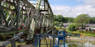 Removal and replacement of structural steel floor system, bottom chord, vertical & diagonal members and top chord strengthening. Reconstruction of concrete fascias on approach spans with new bridge railing along the length of the bridge.